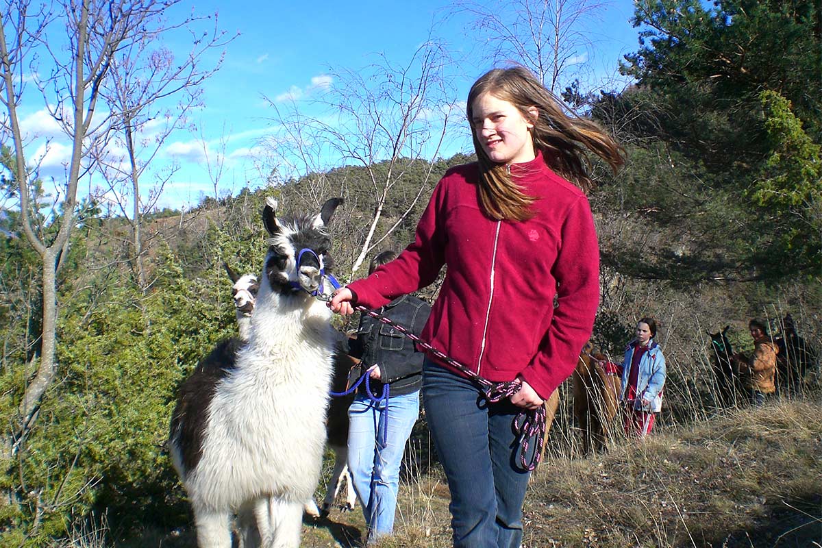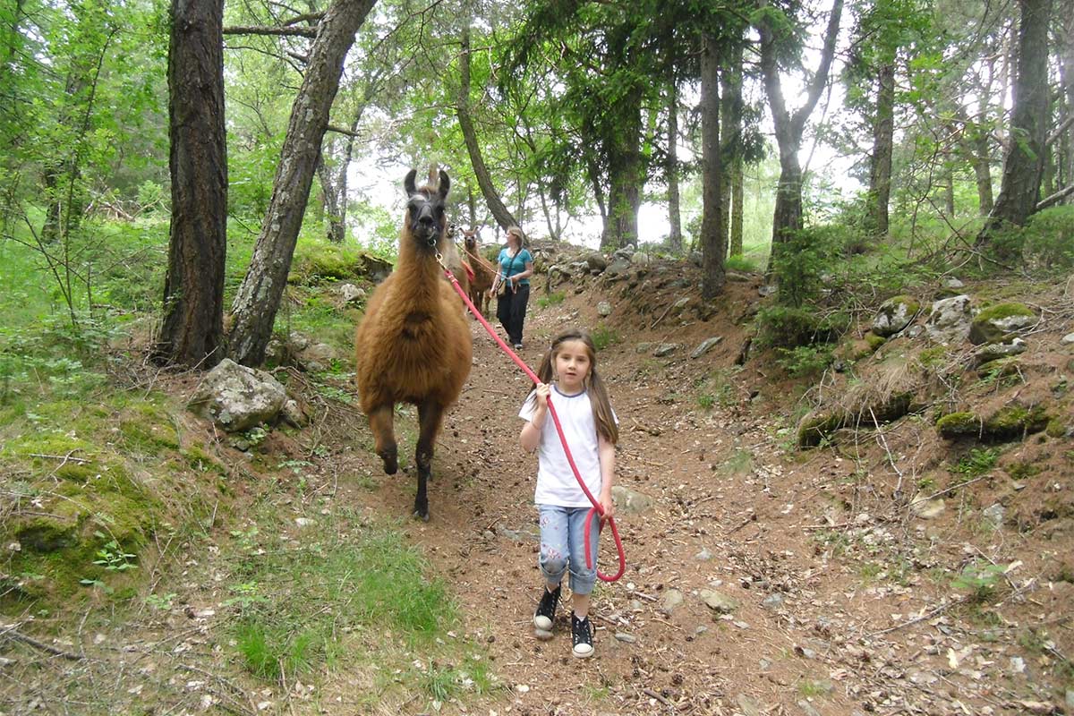 Wolliges Fell streicheln, ein wenig bürsten, das Halfter anlegen und einen Ausflug Seite an Seite mit den wuscheligen, absolut kinderfreundlichen Lamas machen.