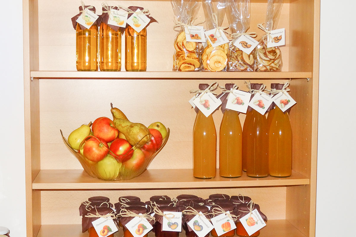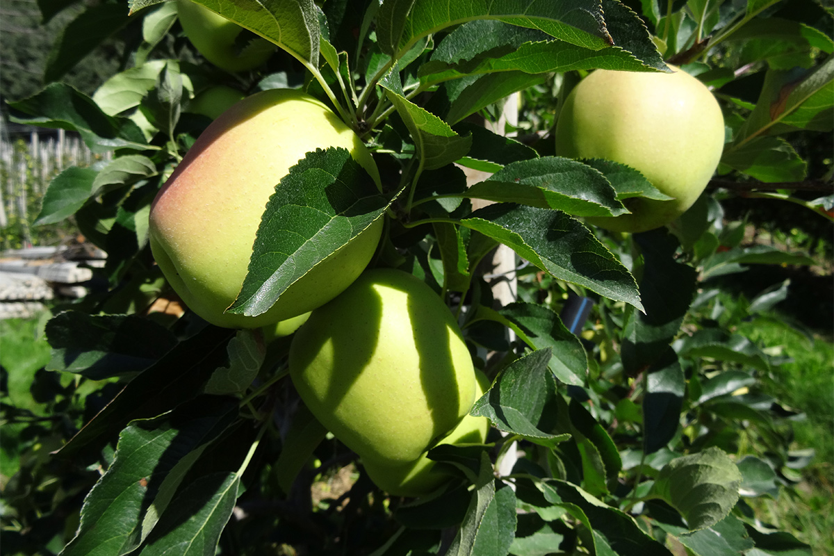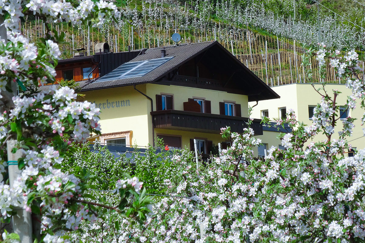 Neben Royal Gala, Fuji, Braeburn, Granny Smith und Red Delicious haben wir hauptsächlich den Golden Delicious angebaut. Im Keller lagert unser Rotwein „Vernatsch“ (Trollinger), den wir selbst ausbauen und den unsere Hausgäste sehr schätzen.